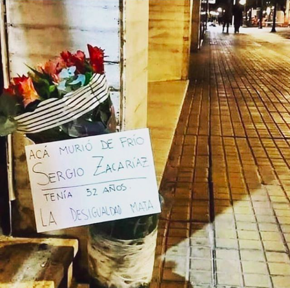 Sergio Zacarías, de 52 años, murió de frío durmiendo en la calle el 1 de julio. Y este hecho desató el espanto y la solidaridad de muchos para con aquellos ciudadanos despojados de todo. Pero también se escucharon declaraciones vergonzosas del vicejefe de gobierno de la Ciudad, Diego Santilli, al ser consultado el 3 de julio en la radio Futurock.